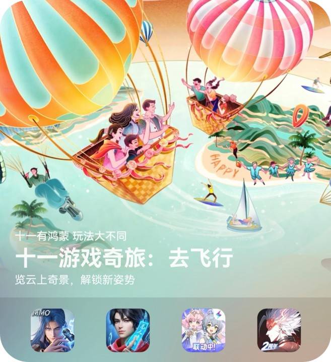 现实里做不到的飞天梦,在游戏里能帮你实现。目前鸿蒙5终端数量已突破2000万,致谢一路同行的鸿蒙合伙人。升级鸿蒙5,打开AppGallery与大家一同探索专题内容和App,下载游戏领取专属福利。这个假期,别再地面蹲了,一起上天happy!