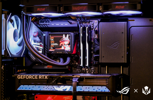 这套配置搭配的 ROG 龙王4 360 水冷,搭载6.67寸2K分辨率曲面屏,60Hz刷新率以及394PPI,画面显示效果比以往的水冷屏幕都要细腻流畅,标配定制32mm加厚冷排,3颗ROG定制高性能ARGB风扇,横扫目前市面上一切旗舰CPU。冷头可滑动设计让主板、内存的选择更自由,隐藏式水冷管设计让水管不再封印整机的颜值。