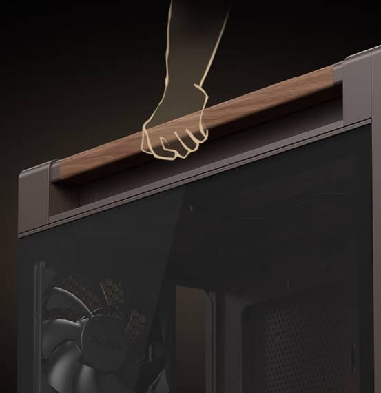 对于追求高颜值桌搭的玩家而言,创梦60胡桃木艺限定版机箱无疑是不二之选。其整体采用胡桃木配色,呈现出优雅的视觉效果,能够与多种室内设计风格和谐搭配,满足设计、建模、渲染等用户的美学需求,为PC DIY玩家提供全新使用体验。机箱前格栅与两侧提手均采用高品质胡桃木材质,并通过了FSC认证,不仅质量值得信赖,触感还温润扎实。其中,两侧一体式胡桃木提手可承受30KG重量,既方便用户移动机箱,又保持了结构的稳固性,满足用户频繁调整硬件配置的需求。