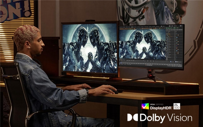 ROG超神32三代电竞显示器具备非常出色的画质显示实力。它支持真10bit色深,覆盖了99%DCI-P3电影级色域范围,而且每台显示器出厂前都会进行预校准,以确保ΔE<2的色彩精准度。喜欢畅玩3A游戏大作的玩家,在如此高标准的色彩表现力下,能够体验非常真实、自然的游戏色彩美学。而且它还搭载了具备符合杜比视界标准的HDR功能,通过VESA DisplayHDR True Black 500认证,同时支持HDR10格式,不仅可以呈现出生动的明暗对比度,亮度与色彩表现也相当惊艳。畅玩HDR游戏时,游戏画面的细节分毫毕现,沉浸式的游戏视觉体验也能让玩家感受到身临其境般的视觉享受。