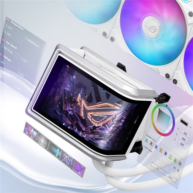 外观方面,水冷冷头配备了6.67英寸AMOLED曲面屏,支持2K分辨率与60Hz刷新率,并加入防眩光涂层,设计精致且视觉效果出众。而且通过ASUS InfoHub软件,玩家可自定义显示内容或查看硬件信息。该水冷还采用磁吸式冷头与全新扣具设计,兼顾兼容性与安装便利性。