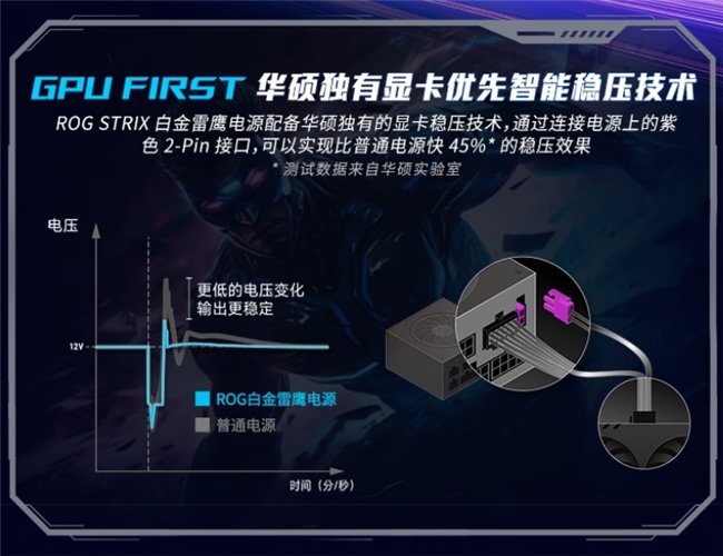 为了更好地支持末日生存战斗,小编还带来了ROG白金雷鹰氮化镓电源。其搭载华硕独有的显卡优先智能稳压技术,稳压效果比普通电源快45%,能有效保障主机在应对游戏中复杂场景、高负载任务时,依然稳定运行,避免因供电不稳而出现卡顿、死机等情况,让玩家能够心无旁骛地投入到紧张刺激的战斗中。